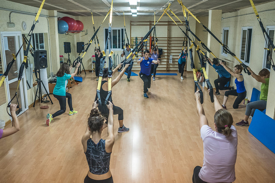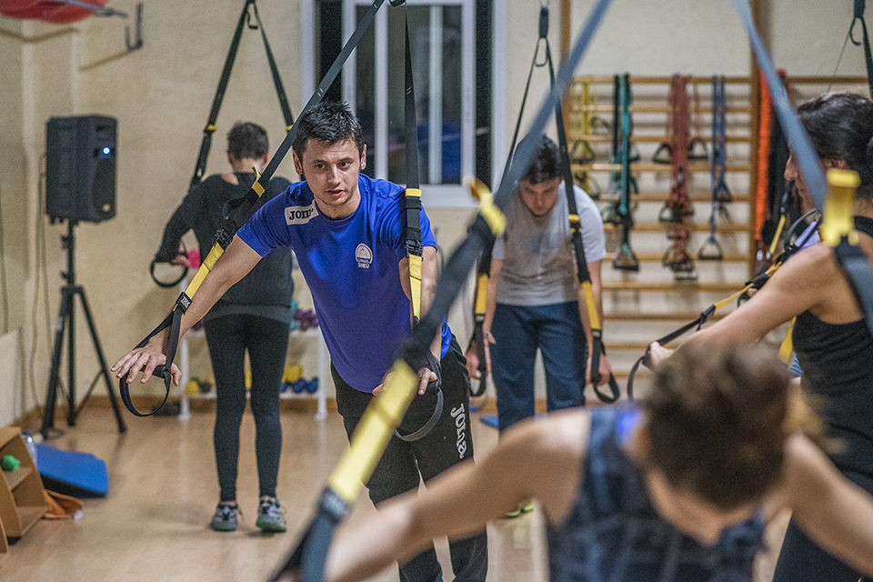 El TRX és una eina de treball format per dues cintes enclavades al sostre o paret, amb dues agafades al final de cada cinta, que ens permet treballar tots els grups musculars,