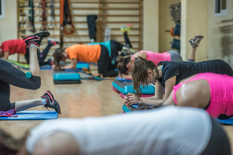 Sessió d’entrenament on inicialment hi ha un treball cardiovascular amb step o aeròbic (15’ – 20’) i posteriorment es treballen els principals músculs del cos